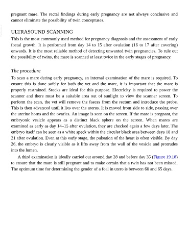 the possibility of twins, the mare is scanned at least twice in the early stages of pregnancy.