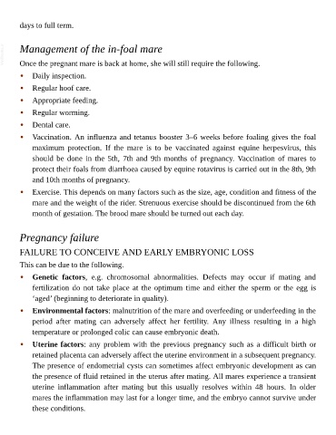 mare and the weight of the rider. Strenuous exercise should be discontinued from the 6th