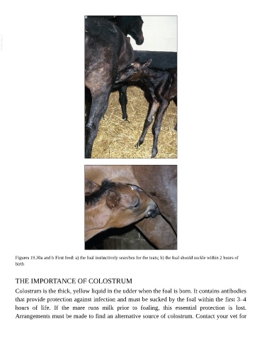 Figures 19.30a and b First feed: a) the foal instinctively searches for the teats; b) the foal should suckle within 2 hours of