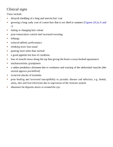 • loss of muscle tissue along the top line giving the horse a sway-backed appearance