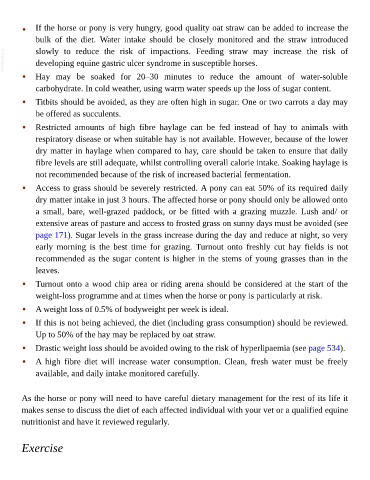 weight-loss programme and at times when the horse or pony is particularly at risk.