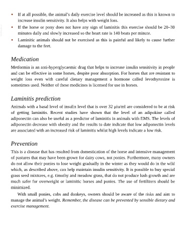 • Laminitic animals should not be exercised as this is painful and likely to cause further