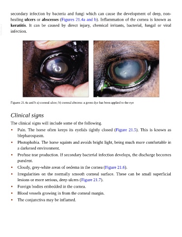 healing ulcers or abscesses (Figures 21.4a and b). Inflammation of the cornea is known as