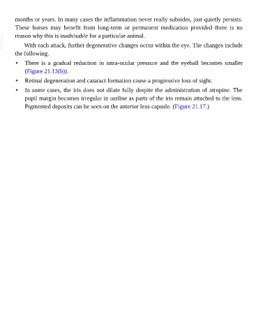 Pigmented deposits can be seen on the anterior lens capsule. (Figure 21.17.)