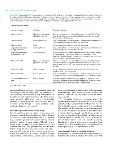 VetBooks.ir Table 123.3 Compound urolith recurrence prevention strategies. The strategy for prevention of compound uroliths is typically directed at