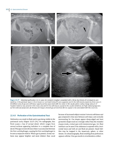 be seen as separate entities. Where gas is present, serosal sur- tissues. On ultrasonography, fluid resulting from perforation