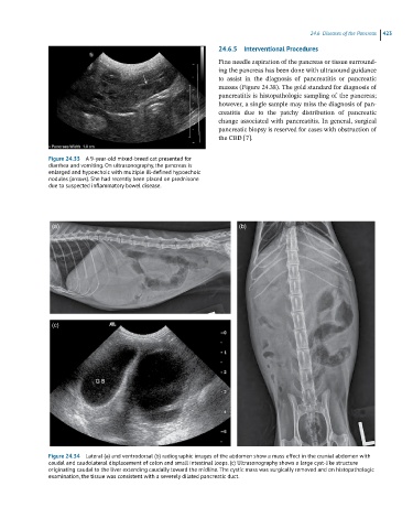 diarrhea and vomiting. On ultrasonography, the pancreas is