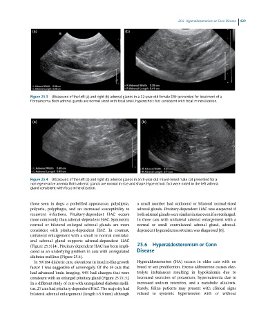 Figure 25.3 Ultrasound of the left (a) and right (b) adrenal glands in a 12-year-old female DSH presented for treatment of a