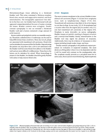 wall with a loss of wall layering. (c) Transitional cell carcinoma usually involves the apex of the urinary bladder in cats, unlike in dogs