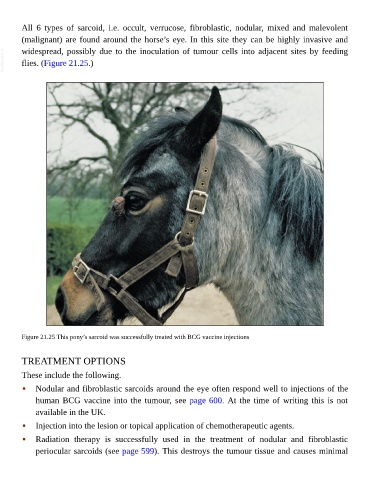 periocular sarcoids (see page 599). This destroys the tumour tissue and causes minimal