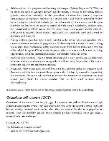 VetBooks.ir growth, oestrus and ovulation so the mare does not come into season. Long-term