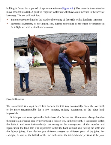 holding it flexed for a period of up to one minute (Figure 4.8.) The horse is then asked to