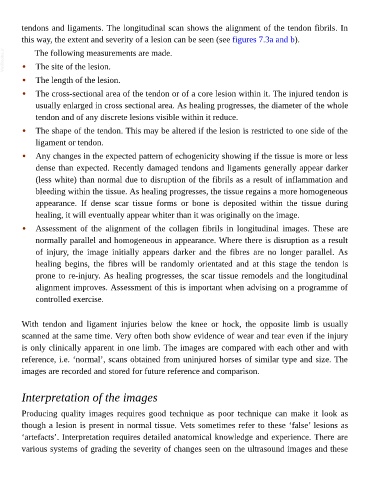 tendons and ligaments. The longitudinal scan shows the alignment of the tendon fibrils. In