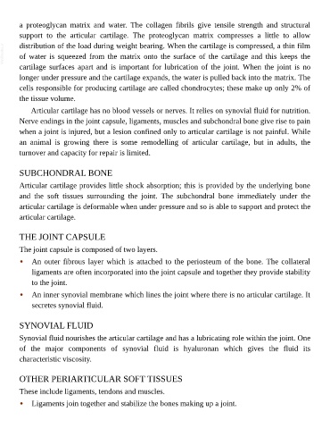 support to the articular cartilage. The proteoglycan matrix compresses a little to allow