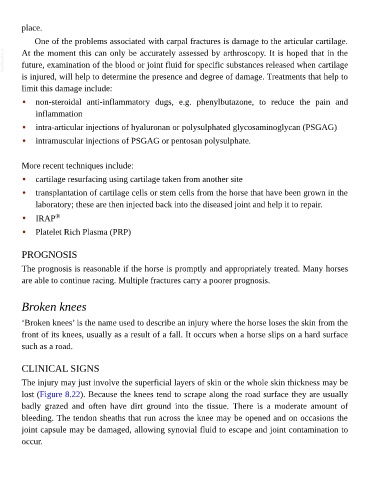 ‘Broken knees’ is the name used to describe an injury where the horse loses the skin from the