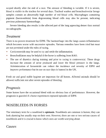 There is no proven treatment for EIPH. The haemorrhage into the lungs causes inflammation