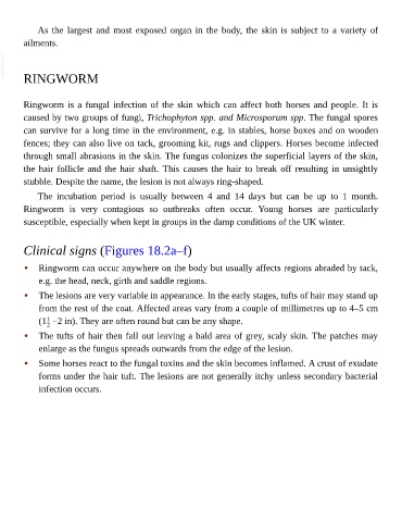 • Ringworm can occur anywhere on the body but usually affects regions abraded by tack,