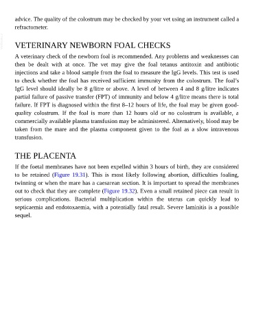 advice. The quality of the colostrum may be checked by your vet using an instrument called a