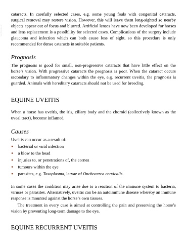 cataracts. In carefully selected cases, e.g. some young foals with congenital cataracts,