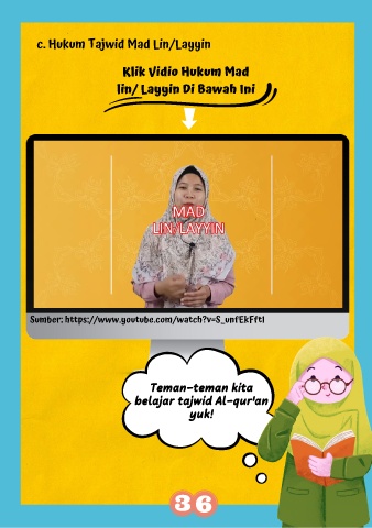 c. Hukum Tajwid Mad Lin/Layyin Klik Vidio Hukum Mad lin/ Layyin Di Bawah Ini Sumber: https://www.youtube.com/watch?v=S_unfEkFftI Teman-teman kita belajar tajwid Al-qur'an yuk!