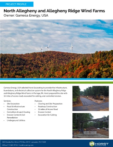 and Allegheny Ridge Wind Farms in Portage, PA. Horst prepared the site with