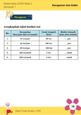Matematika SD/MI Kelas 5 Kecepatan dan Debit Semester 1 10 Rizqi Sindi Amalia, S.Pd