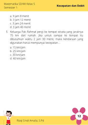 5. Keluarga Pak Rahmat pergi ke tempat wisata yang jaraknya