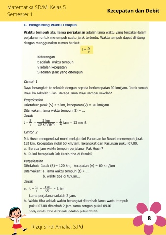 Matematika SD/MI Kelas 5 Kecepatan dan Debit Semester 1 8 Rizqi Sindi Amalia, S.Pd