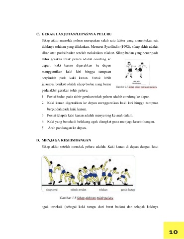 1. Posisi badan pada akhir gerakan tolak peluru adalah condong ke depan.