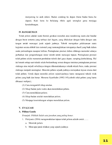 tolak peluru. Untuk dapat menolak peluru sejauh-jauhnya harus menguasai teknik tolak