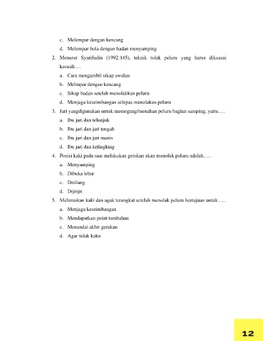 2. Menurut Syarifudin (1992:145), teknik tolak peluru yang harus dikuasai