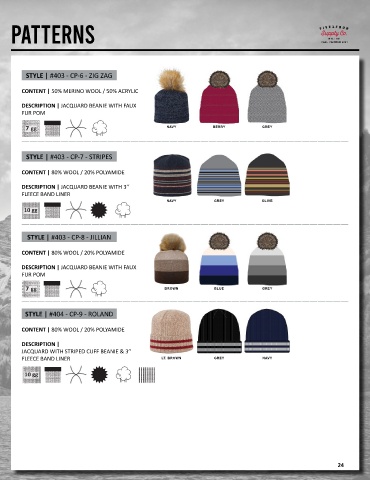 JACQUARD WITH STRIPED CUFF BEANIE & 3’’