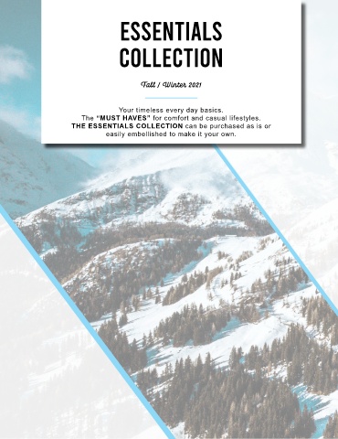ESSENTIALS COLLECTION Fall / Winter 2021 Your timeless every day basics. The “MUST HAVES” for comfort and casual lifestyles. THE ESSENTIALS COLLECTION can be purchased as is or easily embellished to make it your own.