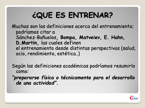 Muchas son las definiciones acerca del entrenamiento; podríamos citar a