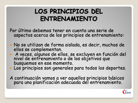 Por último debemos tener en cuenta una serie de aspectos acerca de los principios de entrenamiento: