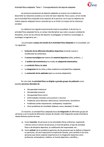 Actividad física adaptada. Tema 1 – Conceptualización del deporte adaptado