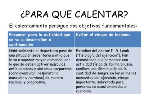 Preparar para la actividad que Evitar el riesgo de lesiones