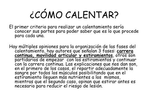 El primer criterio para realizar un calentamiento sería