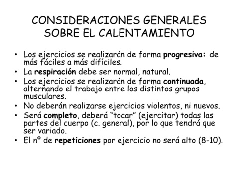 • El nº de repeticiones por ejercicio no será alto (8-10).