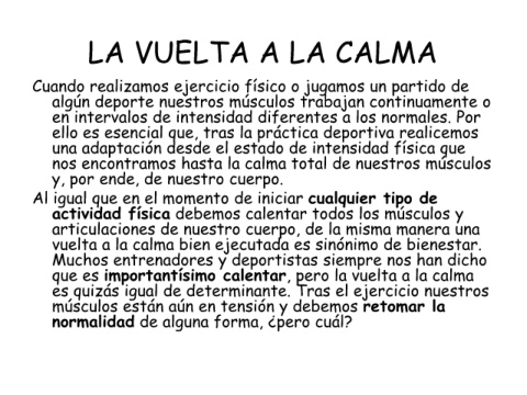 vuelta a la calma bien ejecutada es sinónimo de bienestar.