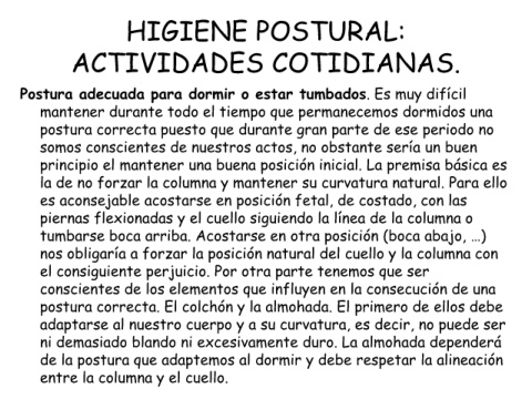 Postura adecuada para dormir o estar tumbados. Es muy difícil