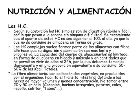 que el aporte de estos HC no sea superior al 10% al día, ya que lo