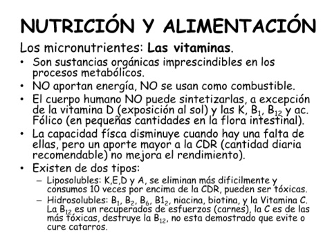 – Hidrosolubles: B , B , B , B1 , niacina, biotina, y la Vitamina C.