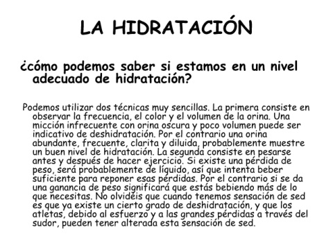 un buen nivel de hidratación. La segunda consiste en pesarse