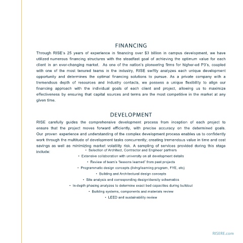 Through RISE’s 25 years of experience in financing over $3 billion in campus development, we have