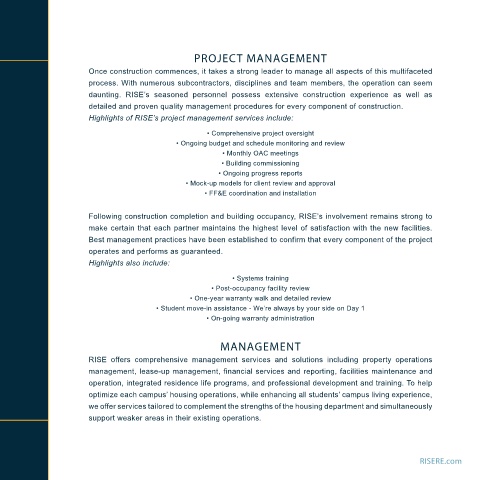 RISE offers comprehensive management services and solutions including property operations