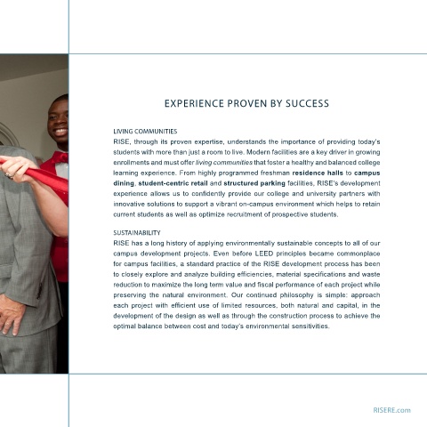dining, student-centric retail and structured parking facilities, RISE’s development
