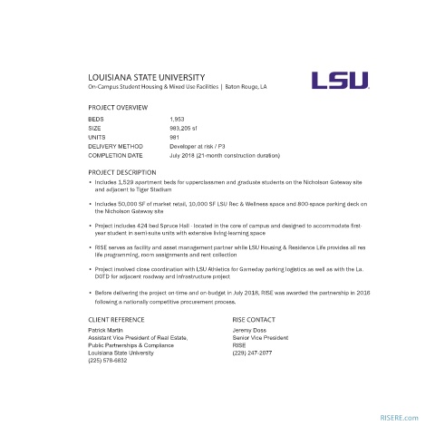 • RISE serves as facility and asset management partner while LSU Housing & Residence Life provides all res