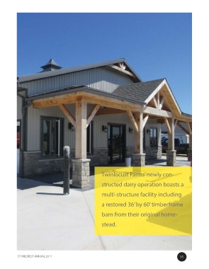STONECREST ANNUAL 2017 Twinlocust Farms’ newly con- structed dairy operation boasts a multi-structure facility including a restored 36’ by 60’ timberframe barn from their original home- stead. 11