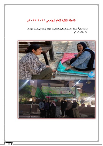 م 2025 - 2024 ىعماجلا ماعلل ةيلكلا ةطشن أ ىعماجلا ماعلل ىمادقلاو ددجلا تابلاطلا لابقتسإ ركسعم ذيفنتب ةيلكلا تماق م 2025 / 2024 63